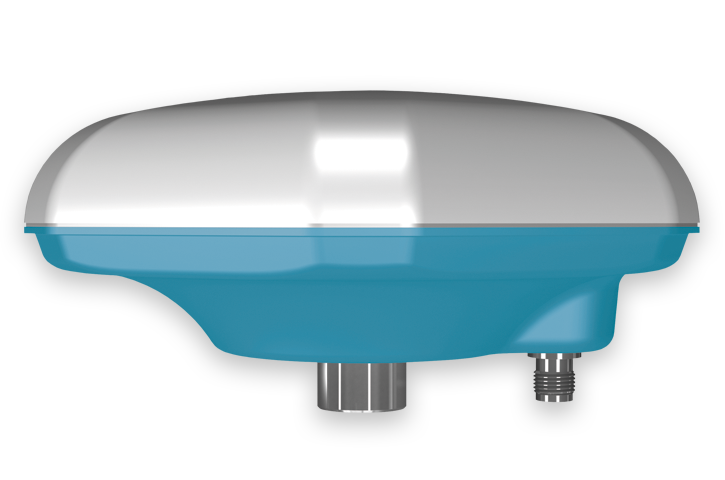 Antenne haut de gamme et haute précision pour station de référence. Antenne GNSS pour solution stationnaire avec longueur de câble jusqu’à 100 m. Réception de tous les signaux du GPS, Glonass, Galileo et Beidou (Compass) avec un gain de 48 dB. Cette antenne présente de très faibles variations du centre de phase (<3 mm) et une stabilité du centre de phase élevée (<0,2 mm). L’antenne reçoit tous les signaux de correction GNSS. Tension 3,3 à 20 volts, entrée d’alimentation <50 mA, résistant à l’eau et à la poussière IP69 et MIL-STD 810g, connecteur TNC et filetage 5/8 pouces.