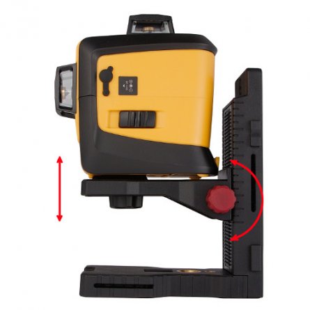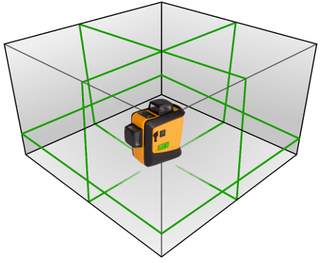 CROSS 3D est un dispositif de traçage exceptionnel affichant un corroyage complet. Trois plans, qui se croisent à angle droit sont décalés par rapport au centre du dispositif, rendant ainsi les points laser supérieur et inférieur toujours visibles (et ce, que le dispositif fonctionne sur le sol ou sur support). En bloquant le compensateur on peut ainsi déterminer des plans inclinés. Disponible en deux versions. Peut fonctionner avec le récepteur RC-9.