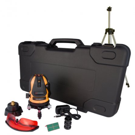 Ensemble Extra incluant: Laser CROSS-4.1, lunette spéciale, cible laser, adaptateur pour trépied (2 pièces: pour trépied élévateur et pour trépied standard), trépied, alimentation électrique et coffret de transport robuste.